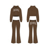 Step into the modern-day Y2K era with this ultra-soft velour set. Designed with a luxe feel and a timeless silhouette, it features a cropped zip-up hoodie paired with high-waisted flare pants for the perfect mix of comfort and confidence.