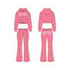 Step into the modern-day Y2K era with this ultra-soft velour set. Designed with a luxe feel and a timeless silhouette, it features a cropped zip-up hoodie paired with high-waisted flare pants for the perfect mix of comfort and confidence.